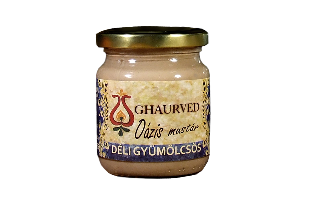 A Ghaurved Oázis déligyümölcsös mustár egy különleges, aszalt fügét és datolyát tartalmazó prémium mustár.